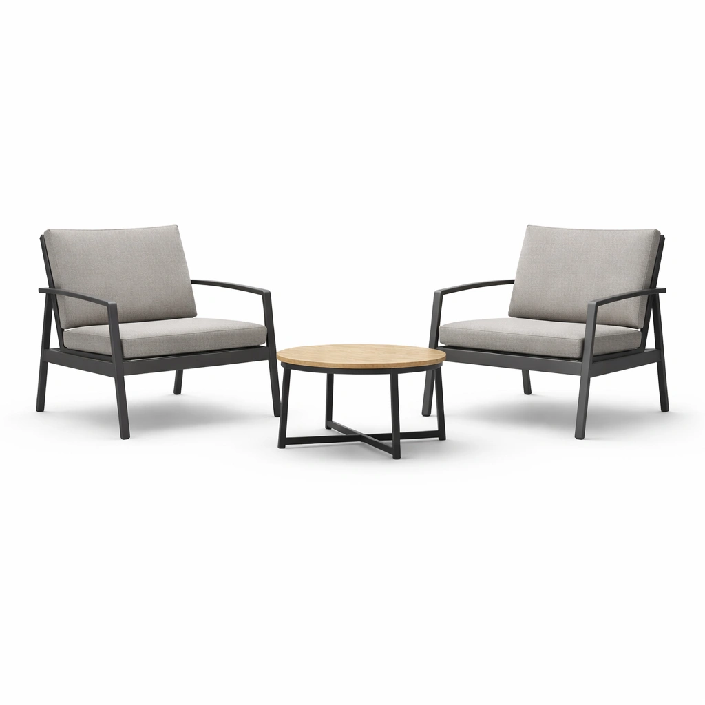 Set da giardino con poltrone in metallo e tavolino in legno di acacia