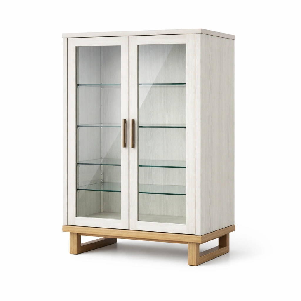 Vetrina in legno con ante e ripiani in vetro temperato 80x40x120 cm