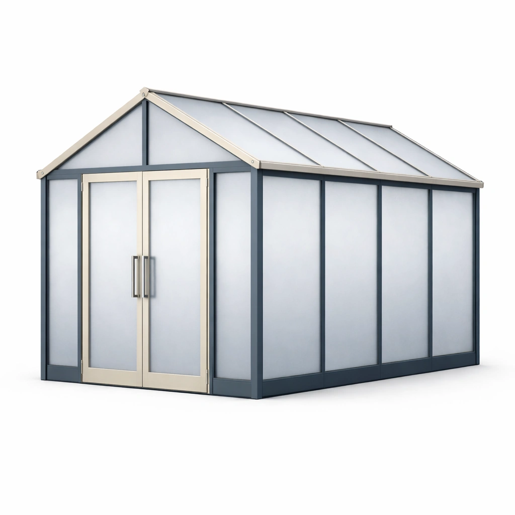 Materiale: Struttura in alluminio, pannelli in policarbonato opaco 6 mm.