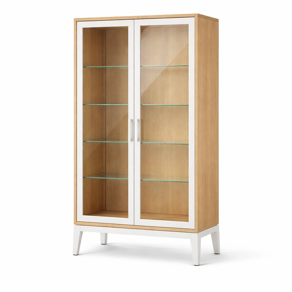 Materiale: Struttura in legno MDF, ante e ripiani in vetro temperato di 6 mm, supporti in acciaio